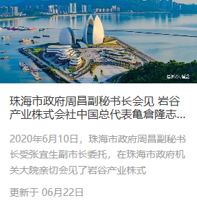 珠海市政府周昌副秘书长会见 万搏官方网页版_万搏(中国)产业株式会社中国总代表亀倉隆志一行